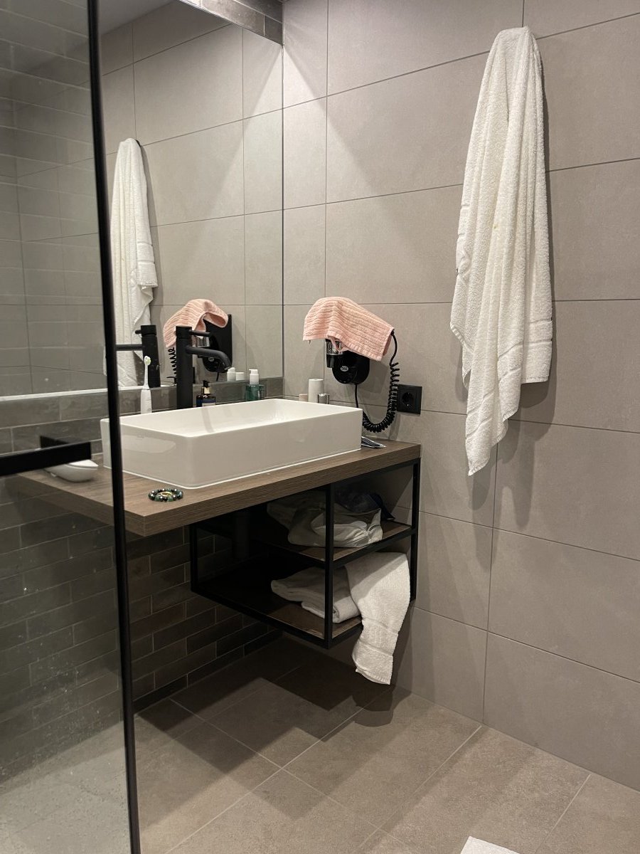 One of the best hotels I've ever visited. Very surprised that the hotel has only ... Mehr One of the best hotels I've ever visited. Very surprised that the hotel has only 3 stars. Compared to, for example, Italian 4-star hotels, I would give this hotel at least 6 stars. Very tasty breakfast. The hotel is very modern, has a very good interior and exterior design. Large and comfortable rooms, we had a room with an area of 28 square meters. There is a gym and a co-working space. For €68, this is an ideal option. German quality in every detail