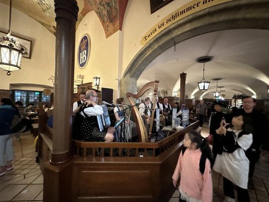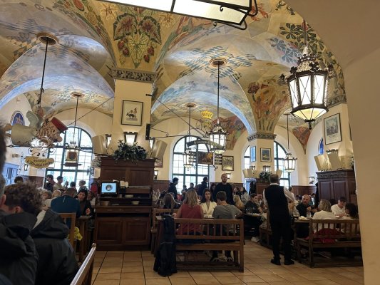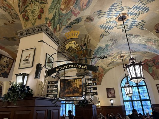 It's not the first time I've been in Hofbräuhaus I've been in both Munich and Berlin. But, every time this place surprises me - the ... Mehr It's not the first time I've been in Hofbräuhaus I've been in both Munich and Berlin. But, every time this place surprises me - the number of people, the amount of beer drunk, insanely delicious German dishes, beautiful waiters. And the building itself has such an atmosphere that you want to sit and enjoy everything around.