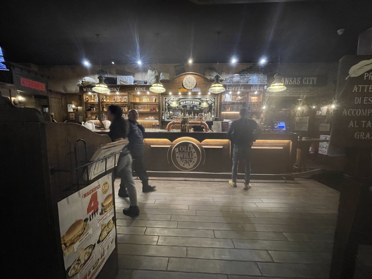 Sono andato con gli amici a cena all'Old Wild West. Un posto piuttosto suggestivo nello stile del selvaggio west. Il menu è vario, ma non ... Mehr Sono andato con gli amici a cena all'Old Wild West. Un posto piuttosto suggestivo nello stile del selvaggio west. Il menu è vario, ma non tutto era disponibile. Ma i piatti sono molto unti e il servizio non è ai massimi livelli, purtroppo. Prezzi molto ragionevoli per l'alcol.