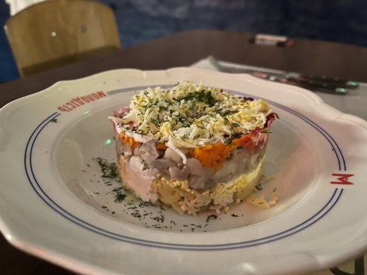 Дивний дуже формат, ніколи б не подумала, що на таке може бути попит, але вільних ... Mehr Дивний дуже формат, ніколи б не подумала, що на таке може бути попит, але вільних місць майже не було. Подача та блюда з радянських часів, мені було смачно.