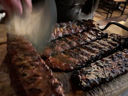 Щодо страв: ребра були не смажені, а швидше варені, з дивною текстурою, як після повторного заморожування. Гірчичний соус мав різкий оцтовий присмак, який повністю перебивав смак м’яса. Пиво подавали недолите — це неприємна дрібниця, яка остаточно зіпсувала враження.