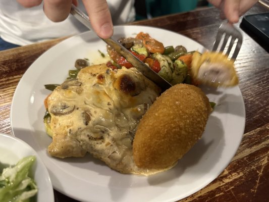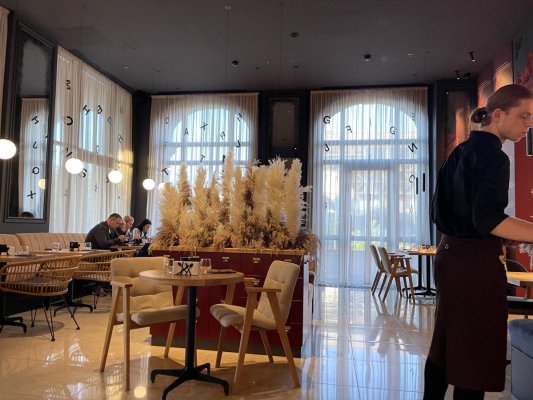 Нам порадили цей ресторан знайомі, які працюють в ресторанному бізнесі, і саме цей факт мене ... Mehr Нам порадили цей ресторан знайомі, які працюють в ресторанному бізнесі, і саме цей факт мене здивував найбільше. Мені складно назвати взагалі рестораном, і це стосується абсолютно всього. Кухня дуже посередня, рівень провінційного кафе. Інтерʼєр? Звичайний, нічого особливого, навіть дешево. В чому перевага цього закладу я так і не зрозумів.