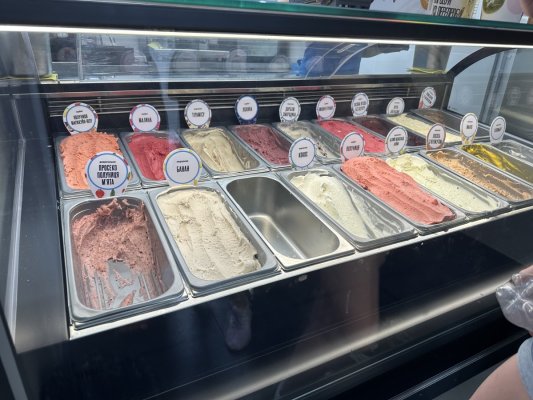Вибір морозива менше, ніж на сайті, але є цікаве - лосось, помідори, просеко)))), а також багато класичного фруктового та просто солодкого.