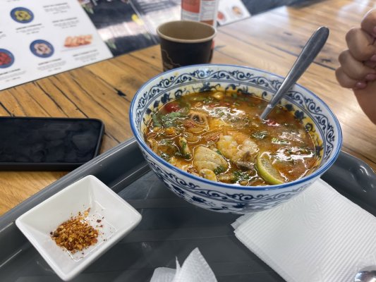 Ресторан Ramyunbaby вразив своїм супом том ям. Бульйон був насиченим, ароматним і пікантним, з ідеально ... Mehr Ресторан Ramyunbaby вразив своїм супом том ям. Бульйон був насиченим, ароматним і пікантним, з ідеально збалансованим кисло-солодким смаком. Поєднання спецій і свіжих інгредієнтів робило кожен ковток справжнім задоволенням. Безумовно, це одне з найкращих місць, де можна скуштувати том ям.