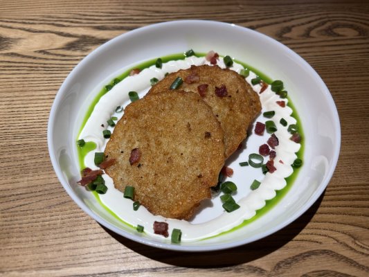 Подача драників гарна, на смак непогано, але трошки жирні, а бекон взагалі неможливо було їсти, ... Mehr Подача драників гарна, на смак непогано, але трошки жирні, а бекон взагалі неможливо було їсти, можна зуби зламати. Томям дуже смачний, тут без питань.