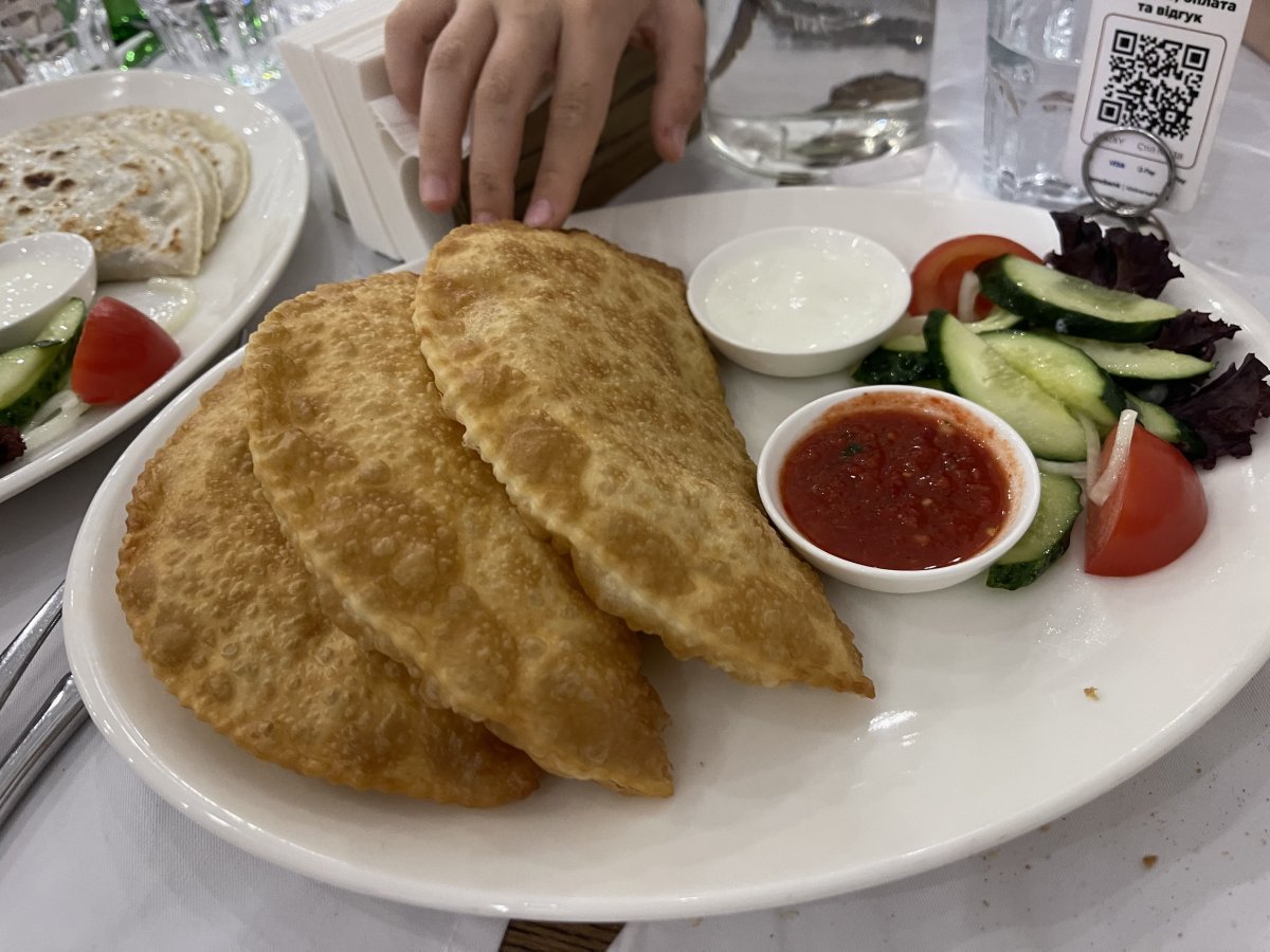 Чебуреки дуже смачні - точно варто спробувати. Подача проста, без прикрас. Інтер’єр затишний і просторий, ... Mehr Чебуреки дуже смачні - точно варто спробувати. Подача проста, без прикрас. Інтер’єр затишний і просторий, приємно сидіти. Персонал ввічливий і доброзичливий. Їжу подають десь за 20–30 хвилин, трохи довго. Ціни, як на мене, трохи завищені. Загалом заклад сподобався.