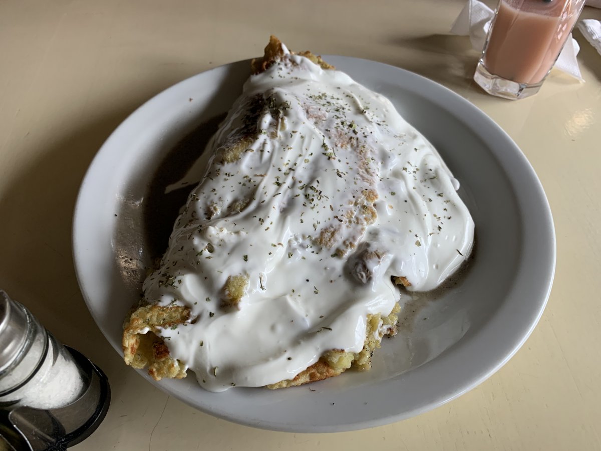 Зашли пообедать в кафе Терасса в Межгорье случайно, были рядом в парикмахерской. Заказали борщ, деруны, картошку с беконом и десерт. Так невкусно я не ела ... Mehr Зашли пообедать в кафе Терасса в Межгорье случайно, были рядом в парикмахерской. Заказали борщ, деруны, картошку с беконом и десерт. Так невкусно я не ела очень давно… деруны были очень жирные и пригоревшие на сковородке, на что официантка почти не отреагировала, только сказала - ну, сковородка такая, такое бывает… не вкусно и не очень приятно…
