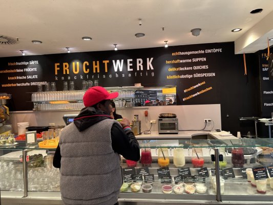 If you like healthy and delicious food, then this is the place for you. In ... Mehr If you like healthy and delicious food, then this is the place for you. In Fruchtwerk a large selection of freshly squeezed juices, a variety of bowls with chicken and vegetables, with fish and vegetables. It is possible to assemble the bowl yourself by adding your favorite ingredients. Insanely delicious for me was a vegetable pie with an egg. I am ready to come here every day for such delicious food.