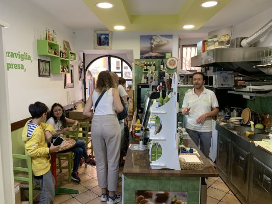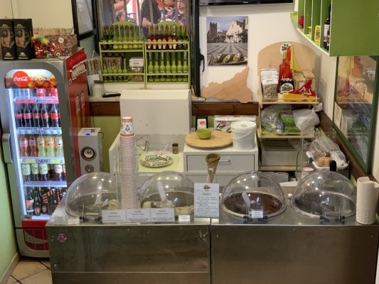 First of all, it is very beautiful here and everything is saturated with the Italian ... Mehr First of all, it is very beautiful here and everything is saturated with the Italian atmosphere. Amazingly beautiful desserts and many branded drinks. The cafe owner treated us to pistachio liqueur. He was very kind and hospitable. The pistachio drink seemed very tasty to us, even tastier than Baileys. But in desserts, we lacked the taste of pistachios, they were very sweet, but even this fact does not make this place less interesting