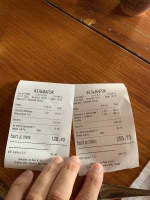 Неочікувано дуже слабка кухня і дуже дорого, без душі. Дуже розчарований. За три ніякі деруни ... Mehr Неочікувано дуже слабка кухня і дуже дорого, без душі. Дуже розчарований. За три ніякі деруни 154 грн, це смішно. Це 100 відсотків не ресторан, рівень забігаловки.