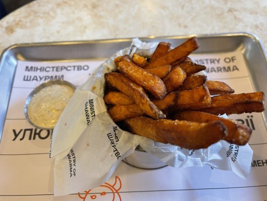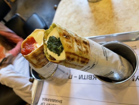 Дуже незвичний формат закладу, але в ньому є своя гарна атмосфера. Ідеальне обслуговування, але сама ... Mehr Дуже незвичний формат закладу, але в ньому є своя гарна атмосфера. Ідеальне обслуговування, але сама шаурма так собі. Можливо це не моє, зайшли заради експерименту )