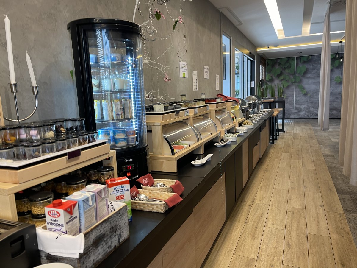 Traveled around Europe with children and a dog. I had to look for an overnight ... Mehr Traveled around Europe with children and a dog. I had to look for an overnight stay in Poland so that the next day I could already be in Germany. On my way was the city of Zielona Gora. We chose a hotel because it provides for a settlement with pets, for us it was important. We were greeted by the administrator, briefly told the conditions of accommodation and breakfast time. Our room was spacious and modern. Quality plumbing, quality materials, excellent bed. We could use the kettle and fridge. I really liked the curtains, they blocked the morning light and we were able to sleep. The breakfast was varied and very tasty. Three types of eggs, sausages, fish, lots of vegetables and fruits and delicious desserts. The hotel has a lot of entertainment for children and adults - bowling, sauna, billiards, gym, children's room. I recommend the hotel not only as a transit, but also as an option for relaxation, as the hotel is surrounded by forest