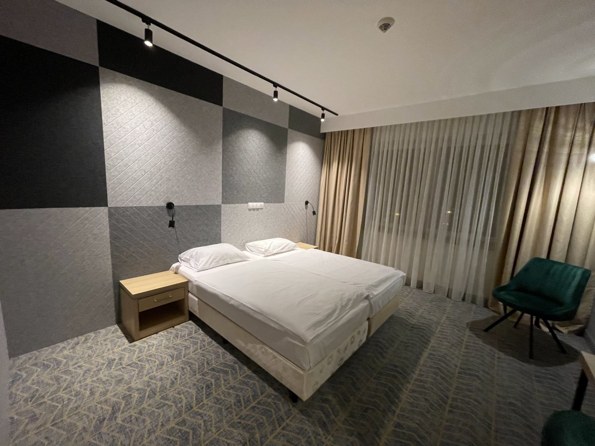 The hotel was chosen only for an overnight stay, because it was suitable for the ... Mehr The hotel was chosen only for an overnight stay, because it was suitable for the price. Check-in until 11 pm, but we were late and the administrator called us to inform us that he was waiting for us. We were put in a room on the 3rd floor, but we saw that it was not cleaned there and returned to the administrator. Then we were offered another room which was bigger and clean. It was a two-room suite with a refrigerator and a large TV. The bed is quite comfortable, soundproofing is excellent.