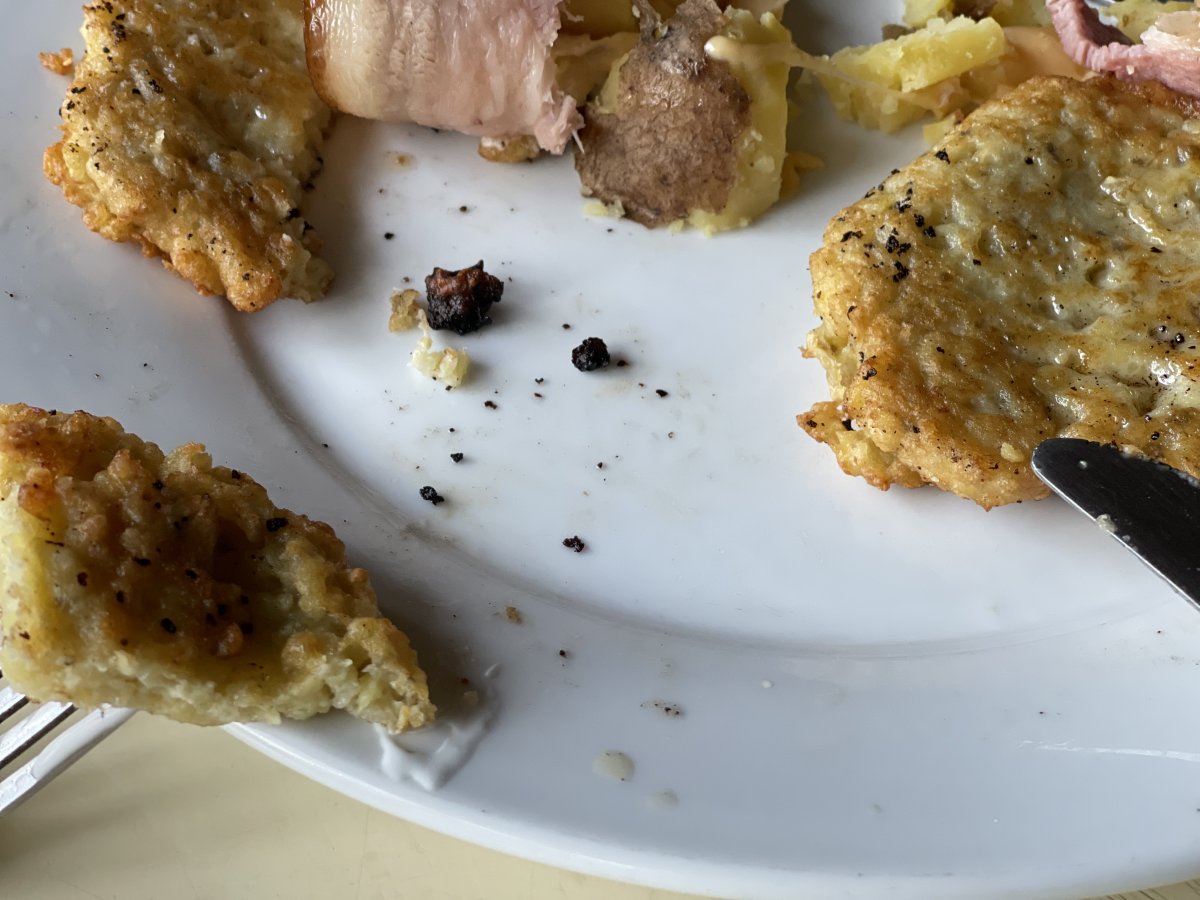 Зашли пообедать в кафе Терасса в Межгорье случайно, были рядом в парикмахерской. Заказали борщ, деруны, ... Mehr Зашли пообедать в кафе Терасса в Межгорье случайно, были рядом в парикмахерской. Заказали борщ, деруны, картошку с беконом и десерт. Так невкусно я не ела очень давно… деруны были очень жирные и пригоревшие на сковородке, на что официантка почти не отреагировала, только сказала - ну, сковородка такая, такое бывает… не вкусно и не очень приятно…
