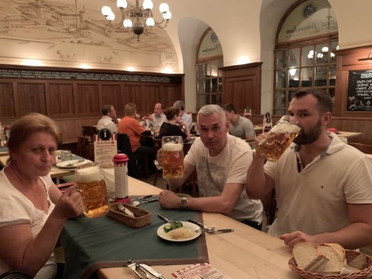 The restaurant is located near Wawel Castle - the residence of Polish kings. There is ... Mehr The restaurant is located near Wawel Castle - the residence of Polish kings. There is always a queue under the restaurant, because the restaurant is very popular, we have repeatedly seen this. The restaurant is always fun, live music plays and there is a festive atmosphere. All the food is very tasty, we ordered schnitzel and sausages, excellent beer.