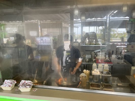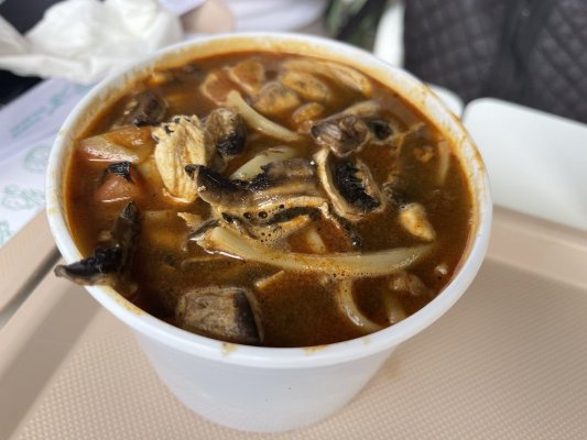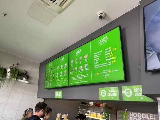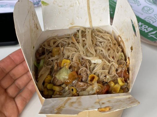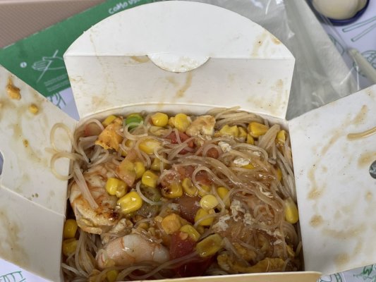 I wanted something tasty, hot and fast. Our choice was Noodle box and sushi. Very ... Mehr I wanted something tasty, hot and fast. Our choice was Noodle box and sushi. Very tasty, but I warn you, the portions are large, so take 1 dish for 1 person